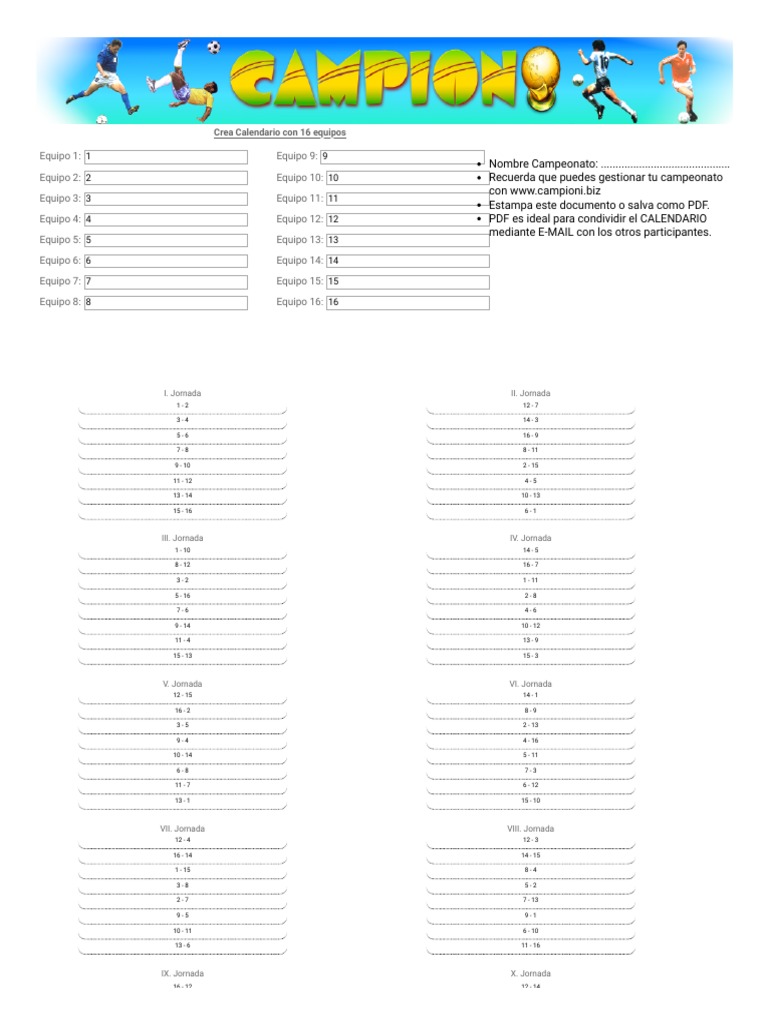 Como Hacer Un Rol De Juegos Para 13 Equipos