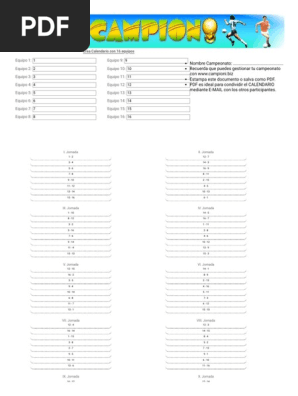 Descargue como DOCX PDF o lea en línea desde Scribd. PLANTILLA PARA ELABORAR UN CALENDARIO DE JUEGOS DESDE 3 HASTA 12 EQUIPOS 3 Equipos 4 Equipos 5 Equipos 6 Equipos 7 Equipos 8 Equipos 9 Equipos 10 Equipos 11 Equipos 12 Equipos 3 Juegos 6 Juegos 10 Juegos 15 Juegos 21 Juegos 28 Juegos 36 Juegos 45 Juegos 55 Juegos 66 Juegos 1 vs 2 3 vs. Además uno de ellos te fortalece ante el rechazo y otro te ayuda a romper el hielo con extraños o a identificar mejor qué tanto puedes presionar una venta.
